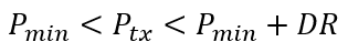 要確定是否可以同時使用激光二極管和光電二極管,只需使用下面顯示的公式進行比較。首先,發(fā)射功率Ptx(以dBm為單位)需要在接收器靈敏度Pmin和線性范圍的高端之間變化,線性范圍是根據(jù)動態(tài)范圍DR定義的: