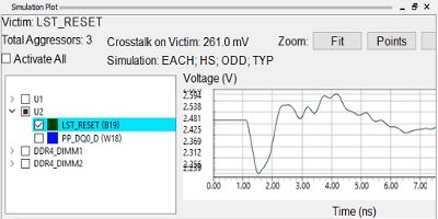 定義設(shè)置后,該工具將返回與設(shè)計(jì)規(guī)則進(jìn)行比較的結(jié)果。結(jié)果以顏色編碼并按降序排列。盡管它們是用顏色編碼的,但您也可以看到一個(gè)數(shù)值結(jié)果,以便可以比較由于互連信號(hào)噪聲引起的峰值過(guò)壓/欠壓,并將其與信令標(biāo)準(zhǔn)進(jìn)行比較。