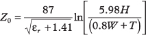H是從地平面到信號(hào)線的距離,W是線寬度,T是線厚度;所有尺寸單位為mils。εr是PCB材料的介電常數(shù)。