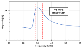 識別電路的帶寬。當(dāng)輸入導(dǎo)納的幅度以對數(shù)刻度繪制時(shí),您可以提取電路的帶寬。帶寬通常定義為導(dǎo)納比峰值導(dǎo)納下降3 dB的頻率。